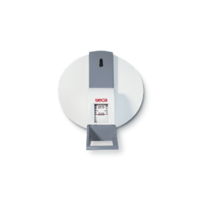 Tallímetro mural con cinta retráctil y tope para la cabeza, ideal para hospitales, consultorios y entornos clínicos. Preciso, compacto y fácil de instalar.